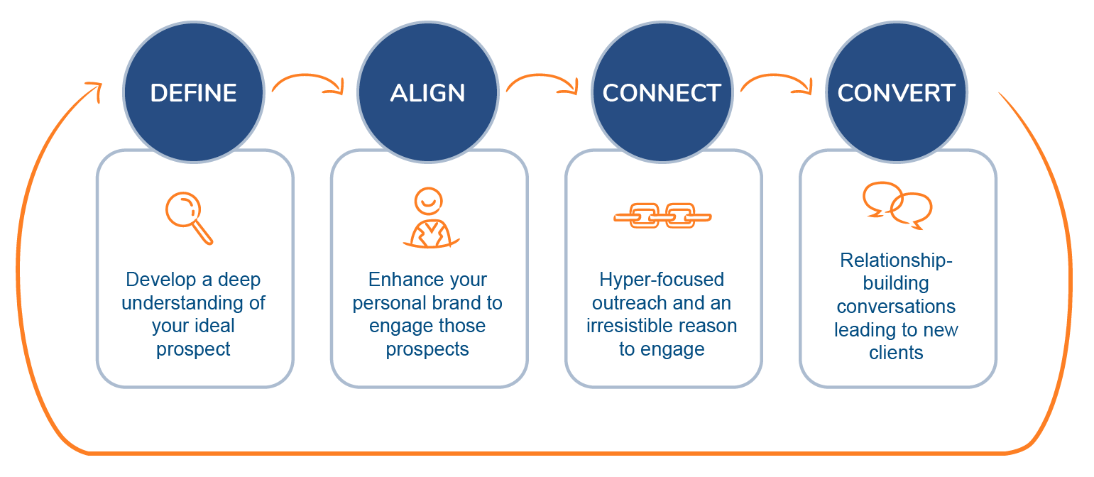 Predictable, scalable, efficient business development doesn’t begin or end with one phone call. Ours is the only business development process that leverages human conducted research and science-driven insights to help you comfortably start new prospect engagement, identify opportunities, establish relationships and secure your ideal clients using our proven Conversion Pipeline methodology...